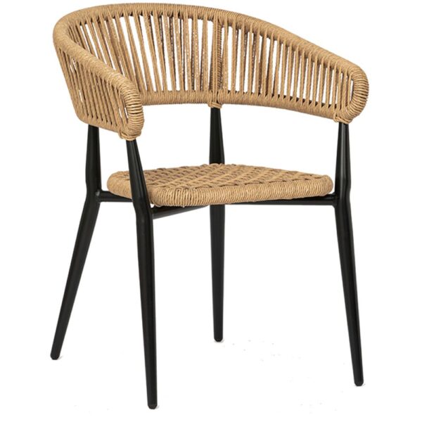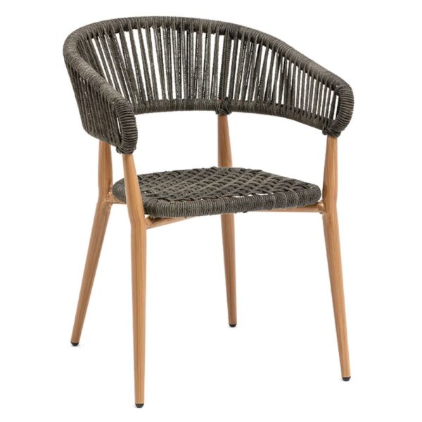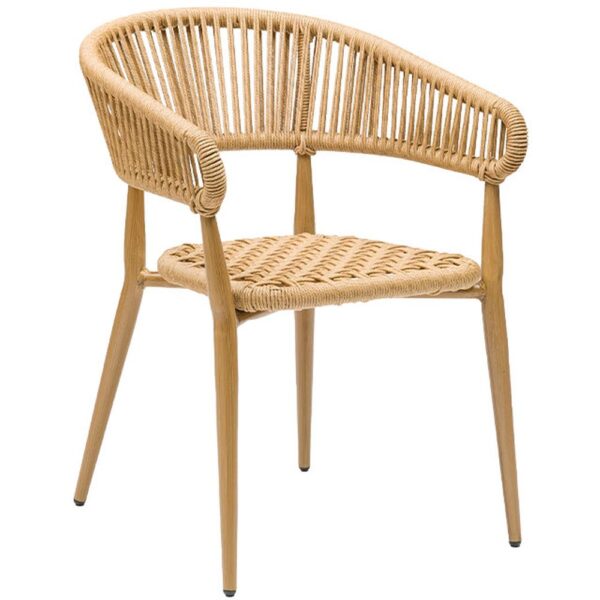 poltrona impilabile in alluminio verniciato, seduta e schienale intrecciato corda sintetica