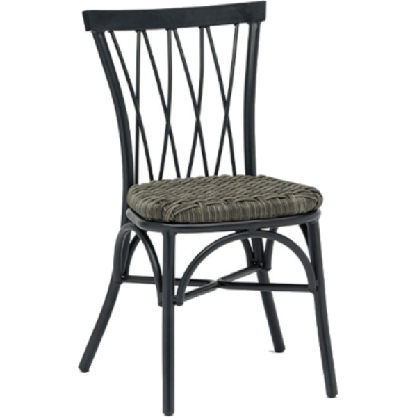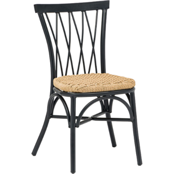 sedia impilabile in alluminio verniciato, seduta intrecciato